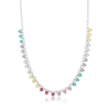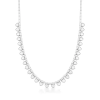 Delicadeza e modernidade se encontram neste colar banhado a ródio com pérolas shell pendentes, entrelaçadas a uma malha groumet que confere brilho e textura ao design. O fecho ímã garante praticidade e conforto, enquanto o acabamento em ródio — um metal da família da platina conhecido por sua resistência e brilho duradouros — realça o contraste elegante entre o brilho metálico e o tom perolado.
